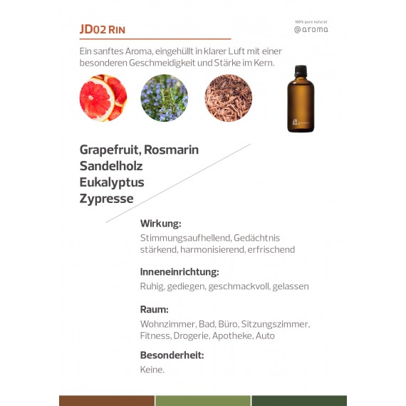 JD02 Rin hat ein sanftes Aroma. Er hüllt uns ein in klare Luft mit einer besonderen Geschmeidigkeit und Stärke im Kern.
