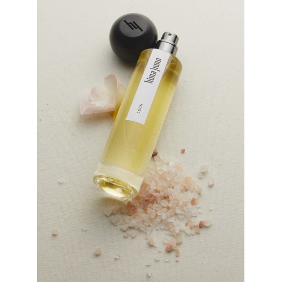 Eine mineralische Brise erweckt ein Gefühl von kristalliner Reinheit: Das rosafarbene Salz des Punjab setzt sich gegen zarte, errötende Blüten von Rosenblättern ab, wie ein Schimmer von Mondlicht auf der Haut der Bergleute.