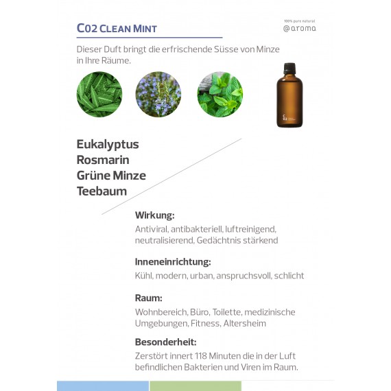 Nutzen Sie den C02 Clean Mint Raumspray, um in Ihrer Umgebung gewünschte Raumduft-Akzente zu setzen.