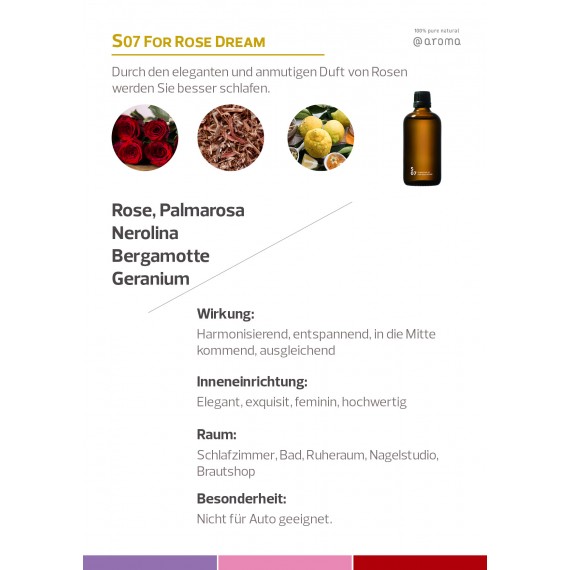 S07 For Rose Dream ist etwas Besonderes für Rosenduft-Liebhaber:innen. Durch den eleganten und anmutigen Duft von Rosen werden Sie nicht nur besser schlafen, sondern sich auch geerdet fühlen.