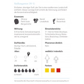 Ein feiner blumiger Duft, der Sie in eine mediterrane Landschaft entführt. Dieser sonnige Raumduft erhöht Ihre Stimmung und fördert Ihre Konzentrationsfähigkeit.